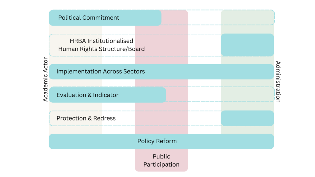 | HRBA Institutional Structure & Human Rights Standard | การจัดตั้งโครงสร้าง กลไก และมาตรฐานด้านสิทธิมนุษยชนภายในเมือง โดยใช้กรอบ Human Rights–Based Approach (HRBA) | ทำให้สิทธิมนุษยชนถูกฝังอยู่ในระบบการบริหาร การตัดสินใจ และการทำงานของหน่วยงานเมือง |